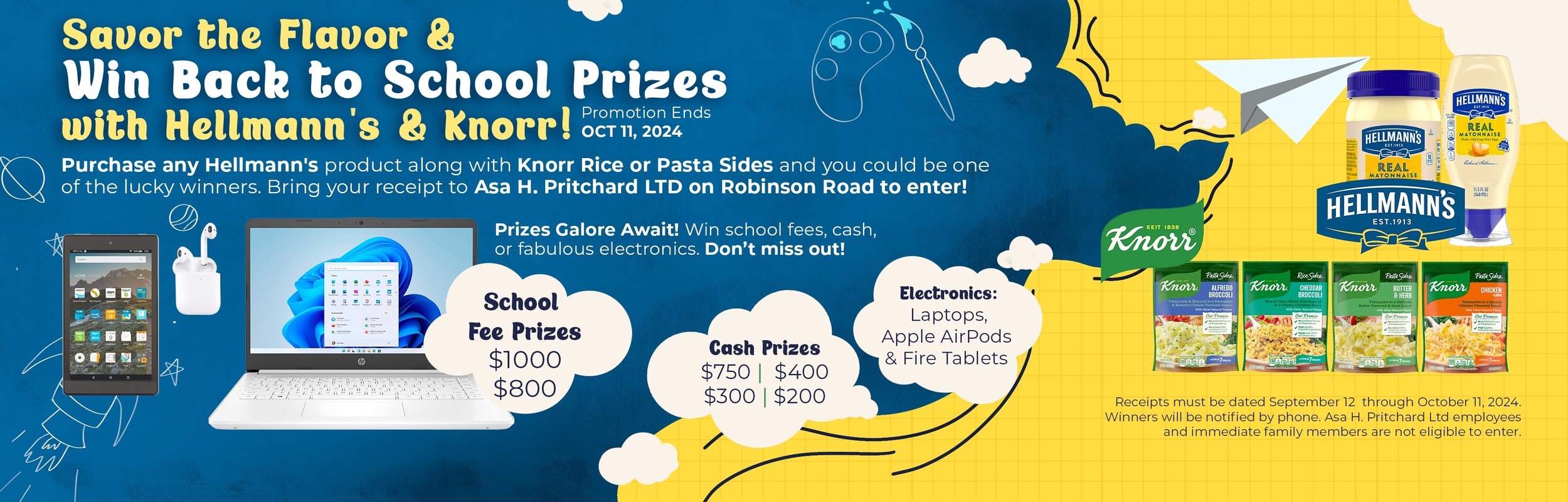 Aspire Designs created both graphic designs and an engaging 2D animation for Hellmann’s and Knorr Rice & Pasta, promoting a back-to-school campaign. The campaign, which was for wholesale client Asa H. Pritchard in The Bahamas, highlighted various prizes including school fee contributions, cash, and electronics. The animation brings the campaign to life, capturing attention and driving customer engagement. Check out the animation here.